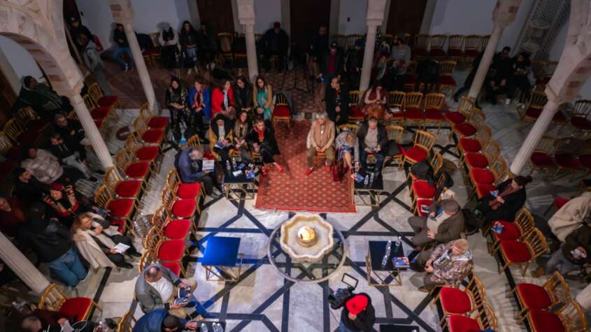 دردشة فنية تمحورت حول إشكاليات القطاع الموسيقي في تونس أدارها الإعلامي شاكر بسباس تحت عنوان “الأغنية التونسية إلى أين”. ومن منطلقات نقاش “الدردشة الفنية” كانت تساؤلات حول معايير الأغنية الناجحة وهل يفرض العصر مفهوم آخر للذوق العام؟ وهل كلمات الأغنية ثابتة أو متحولة حسب المكان والزمان وهل مازال هناك دور لوسائل الاعلام التقليدية في انتشار الأغنية في زمن الذكاء الاصطناعي وهل حافظ نمط ” الراب ” على الهوية التونسية؟ وغيرها من المحاور والاشكاليات المرتبطة بواقع الأغنية التونسية وصناعة الموسيقي في بلادنا.