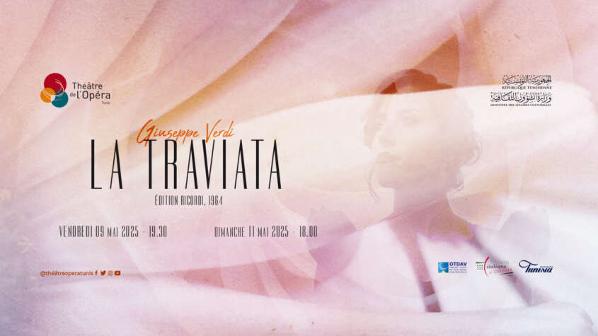 تحت إشراف وزارة الشؤون الثقافية، يقدّم مسرح الأوبرا عرض”لا ترافياتا” للمؤلف الإيطالي “جوزيبي فيردي”، وذلك يومي الجمعة 9 ماي 2025 على الساعة السابعة ونصف مساء والأحد 11 ماي على الساعة السادسة مساء بقاعة الأوبرا بمدينة الثقافة الشاذلي القليبي.