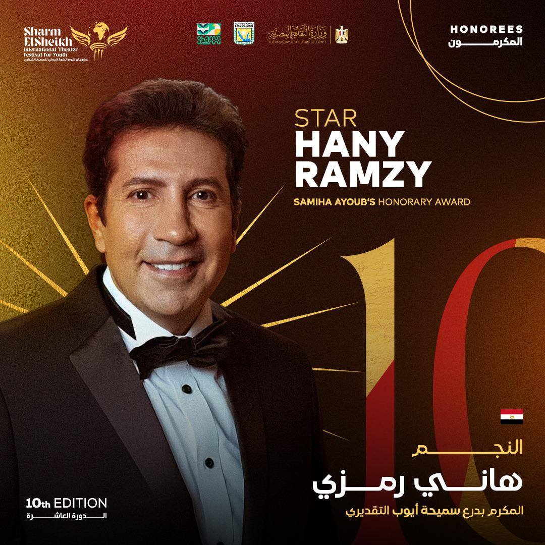 أعلنت إدارة مهرجان شرم الشيخ الدولي للمسرح الشبابي تكريم النجم هاني رمزي، خلال دورته العاشرة التي تنتظم في الفترة الممتدة بين 25 و 30 نوفمبر 2025 وتحمل اسم النجمة إلهام شاهين، ويمنح المهرجان النجم هاني رمزي درع الفنانة سميحة أيوب التقديري، وذلك تقديراً لمسيرته الفنية والمسرحية الثرية بالأعمال المتميزة.