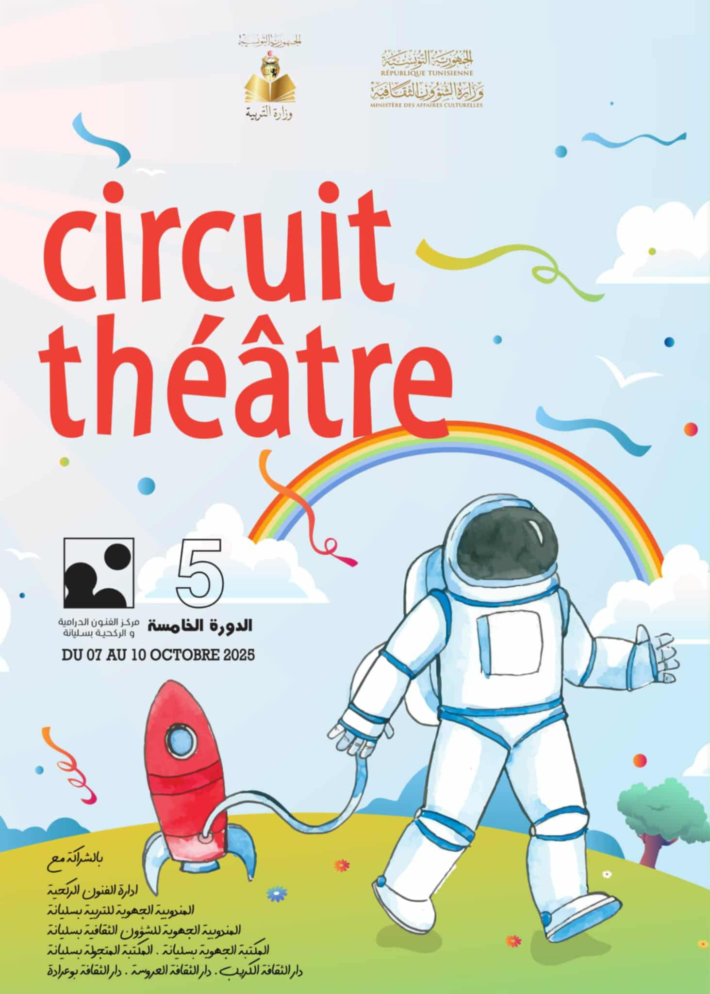تنطلق فعاليات مهرجان “Circuit Théâtre” في دورته الخامسة ابتداء من 7 أكتوبر لتتواصل الى غاية 10 أكتوبر 2025 تحت اشراف وزارة الشؤون الثقافية وبتنظيم من مركز الفنون الدرامية والركحية بسليانة.