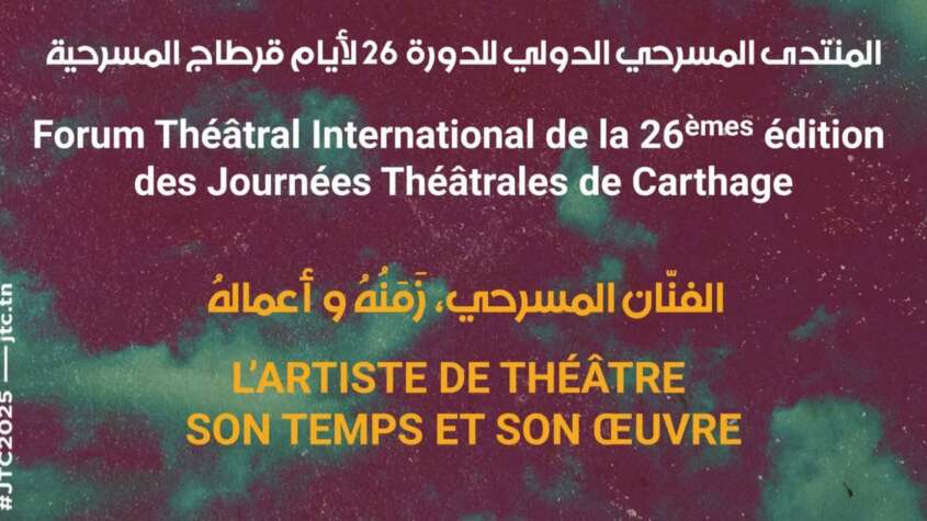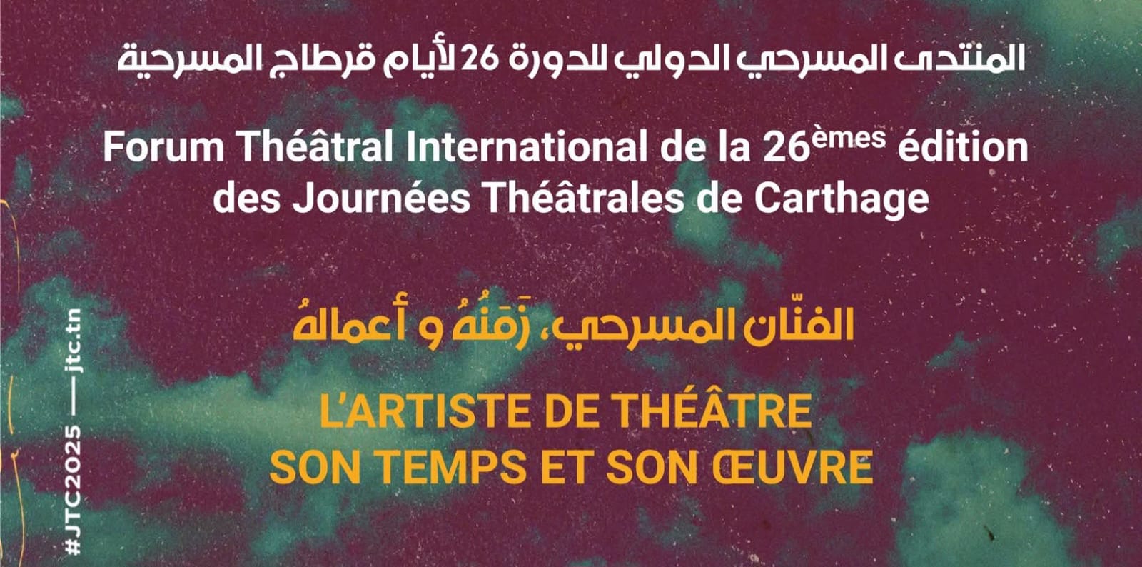 تحتضن أيّام قرطاج المسرحيّة في دورتها السادسة والعشرين على امتداد ثلاثة أيّام24-25-26 نوفمبر 2025 منتدى مسرحي دولي يبحث في موضوع “الفنان المسرحي: زمنه وأعماله” الذي يجمع ثلّة من الكتّاب المسرحيّين والمخرجين والأكاديميّين في مجالات المسرح والفنون والعلوم الإنسانيّة والاجتماعيّة من تونس ومختلف دول العالم.