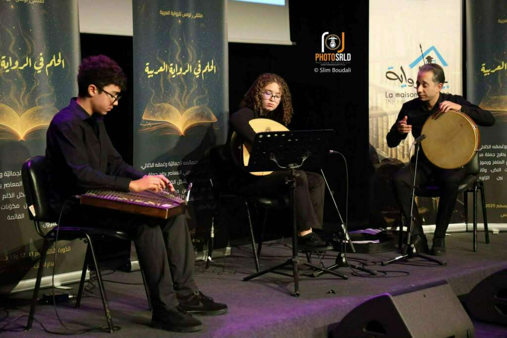 وتضمن البرنامج عرضًا موسيقيًا بعنوان “حلم”، أثّثته مجموعة “وشج” المتكونة من غالية بن حليمة على العود وأوس بن حليمة على القانون، بإشراف محمد حاتم هميلة على آلات الإيقاع. وقدّم الثلاثي أداءً يجمع بين الأصالة والابتكار، مضيفًا لمسة فنية راقية إلى أجواء الملتقى.