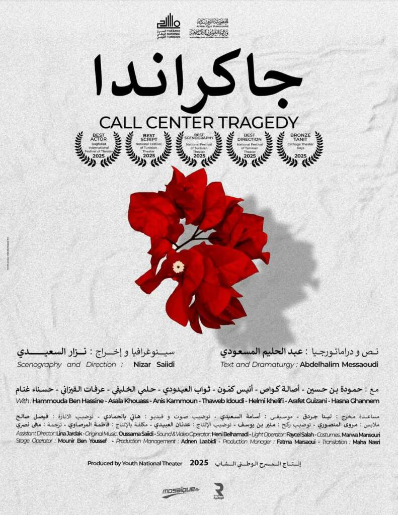 فلعشاق الفن الرابع موعد مع مسرحية “جاكراندا” نص ودراماتورجيا عبد الحليم المسعودي وسينوغرافيا واخراج نزار السعيدي – من انتاج المسرح الوطني الشاب – المتوجة بالتانيت البرنزي بأيام قرطاج المسرحية وجائزة أحسن نص وأحسن اخراج وأحسن سينوغرافيا في المهرجان الوطني للمسرح التونسي – يوم الجمعة 2 جانفي 2026 على الساعة السابعة مساء بقاعة الفن الرابع.