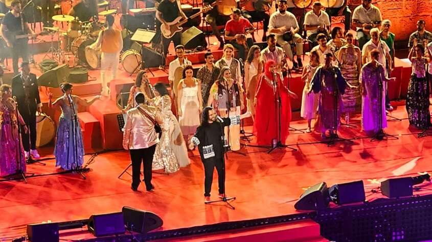 فبين الايقاعات و الأنماط الموسيقية المستعملة و اختلاف الصورة الشعرية من اغنية إلى أخرى و الأصوات باختلاف طبقاتها خلطة سحرية تمثل إحدى نقاط قوة عرض “المحفل”.